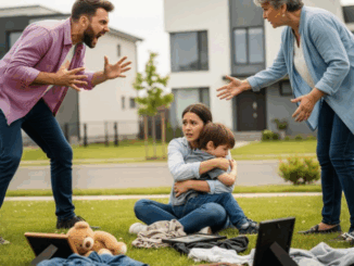Dès que j’ai tourné dans la rue de ma fille, je l’ai senti : cette impression nauséabonde et pesante que quelque chose n’allait vraiment pas. Son jardin était sens dessus dessous : des photos de bébé piétinées dans l’herbe mouillée, des vêtements ruisselants d’eau de pluie, des meubles renversés comme jetés sous le coup de la colère. Et ce qui a suivi a tout changé.