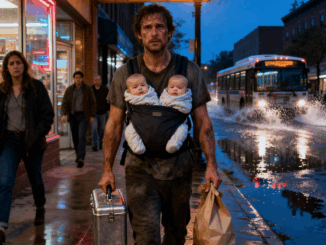 C’était juste un père fatigué, rentrant chez lui avec une boîte à outils dans une main, des courses dans l’autre, et deux nourrissons attachés à sa poitrine après que leur mère les eut abandonnés.