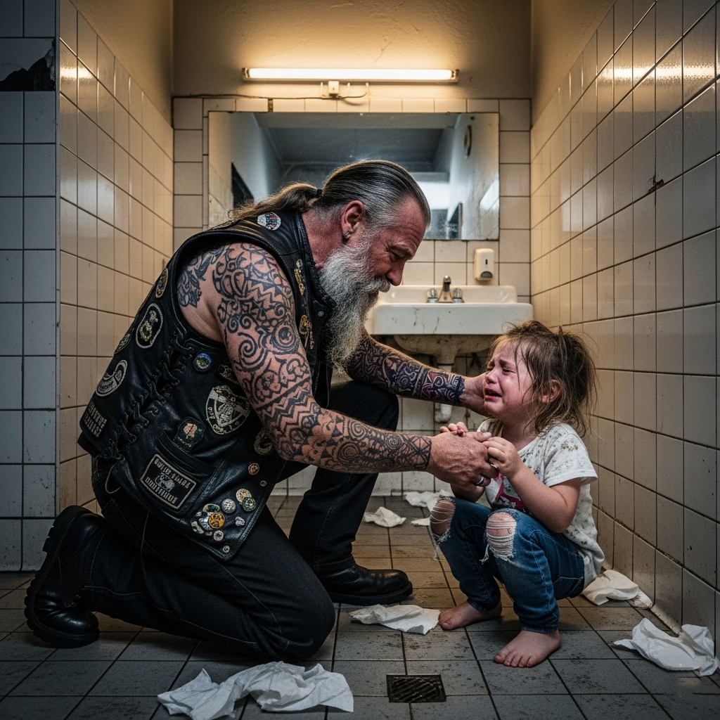Un vieux motard a trouvé une fillette de 6 ans cachée dans les toilettes du restaurant à minuit, meurtrie et terrifiée, le suppliant de ne pas dire à son beau-père où elle se trouvait.