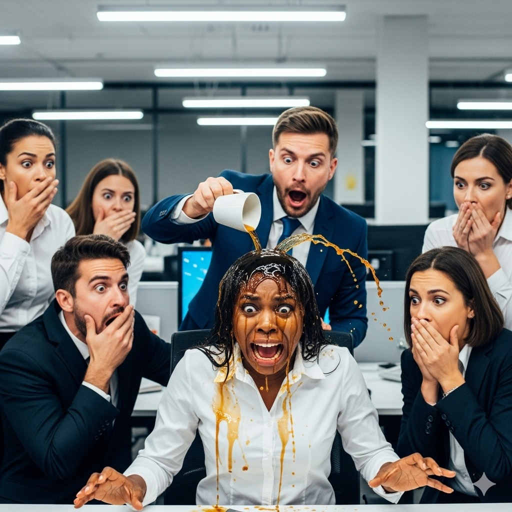 Avant qu’Angela puisse répondre, Dan, pris de rage, inclina sa tasse et versa du café brûlant sur son chemisier blanc. Des exclamations de surprise emplirent la salle de pause tandis que les employés restaient figés, incrédules.