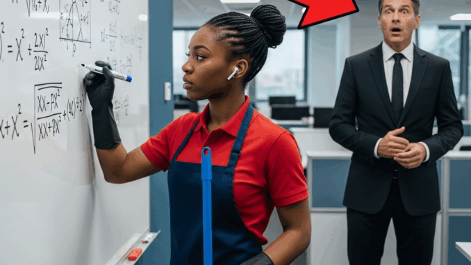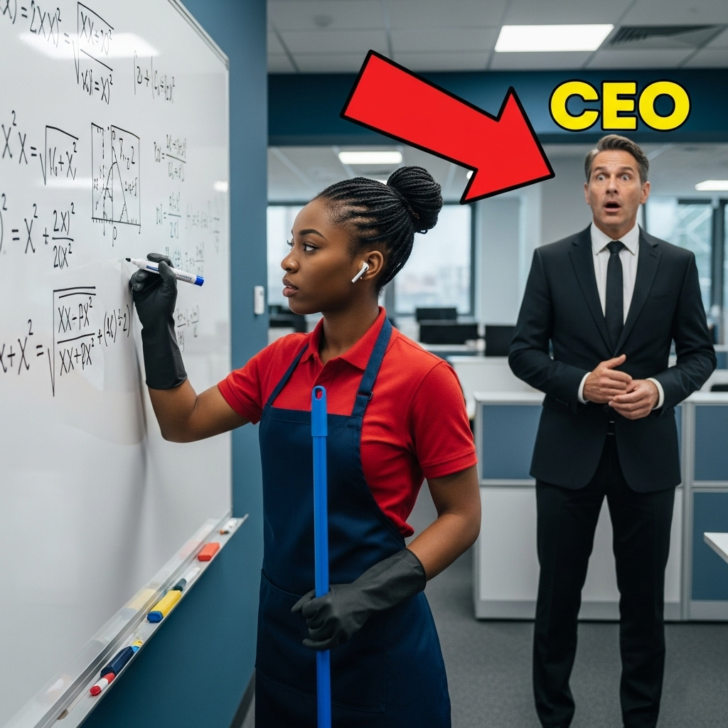 Son cœur se mit à battre la chamade. Ses yeux se fixèrent sur ce tableau noir rempli d’équations compliquées. Pendant quelques secondes, elle se débattit. Une petite voix lui dit : « Ne t’en mêle pas, Rachel, ce n’est pas ton rôle. » Mais une autre voix, plus forte, cria : « Tu peux résoudre ça. » Et alors l’impensable se produisit : Rachel posa son balai, entra dans la pièce et s’approcha du tableau noir. Son regard, formé au MIT, se mit à analyser chaque symbole, chaque équation, et soudain, elle la vit : une minuscule erreur que tous les experts avaient ignorée.