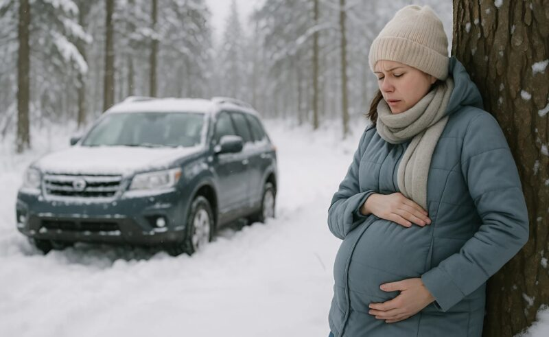 Mary comprit : si elle restait dans la voiture, elle allait geler. Son téléphone n’avait plus de réseau. Désespérée, elle sortit, espérant qu’un chauffeur ou une équipe de secours passerait. Mais la route forestière était déserte. Elle tenait à peine debout, son ventre lui faisait terriblement mal et le bébé était agité.