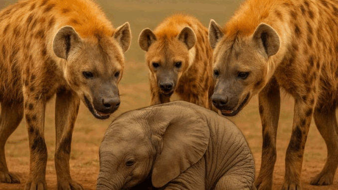 Une meute de hyènes a encerclé un petit bébé éléphant sans défense, prêt à attaquer – mais vous ne croirez pas qui est venu à son secours