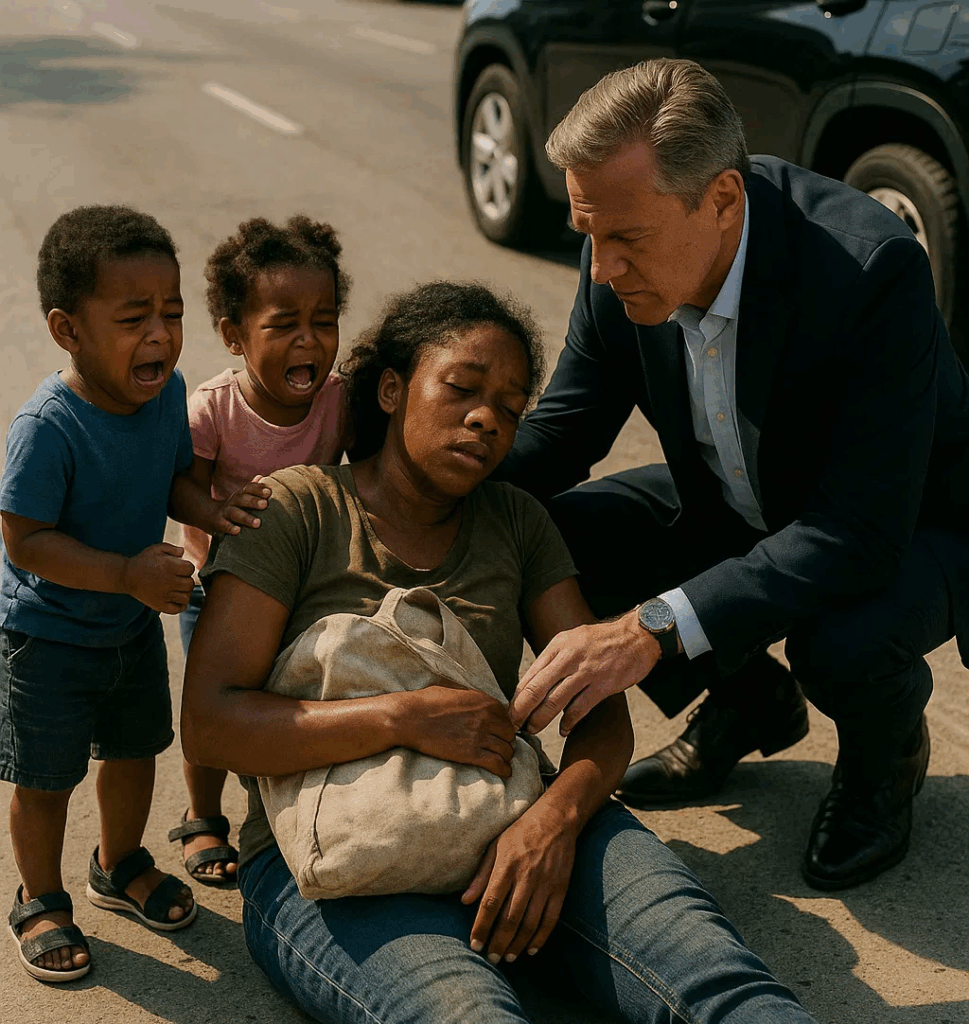 Puis, un élégant SUV noir ralentit jusqu’au bord du trottoir. La vitre teintée s’abaissa, révélant un homme d’une cinquantaine d’années : Jonathan Pierce , entrepreneur milliardaire, un nom souvent cité dans les magazines économiques et les réseaux financiers. Il se rendait à une réunion, mais la vue de deux enfants désespérés serrant leur mère inconsciente lui serra la poitrine.