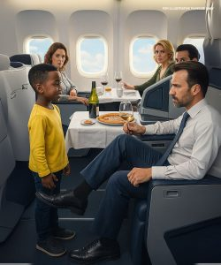 Parmi eux se trouvait Marcus, un jeune garçon noir, qui descendait l’allée avec assurance. C’était son tout premier vol long-courrier seul, et il était ravi. Son billet indiquait 2A, un siège convoité en première classe. Il avait imaginé ce moment pendant des jours, s’imaginant se détendre dans le luxe, comme les adultes des magazines de voyage.