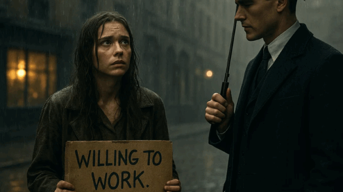 Enveloppée dans un manteau usé, deux tailles trop grand pour elle, ses longs cheveux auburn trempés, la jeune fille s’appuyait contre le mur de briques d’un café du centre-ville. Elle tenait une pancarte en carton sur laquelle était écrit simplement : « Prête à travailler. Aidez-moi, s’il vous plaît. »