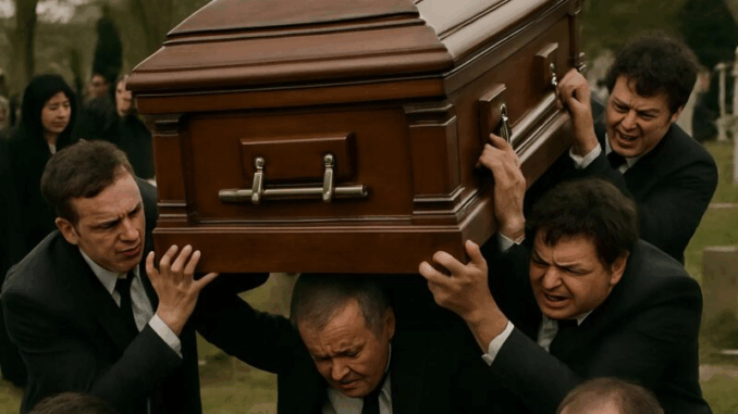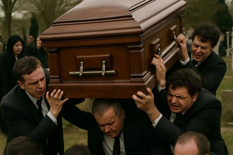 Ce jour-là, le temps reflétait l’atmosphère : ciel gris, air humide et une légère brise qui agitait les arbres du cimetière. Tout semblait ordinaire, comme lors des autres funérailles – jusqu’à ce que huit hommes doivent soulever le cercueil.