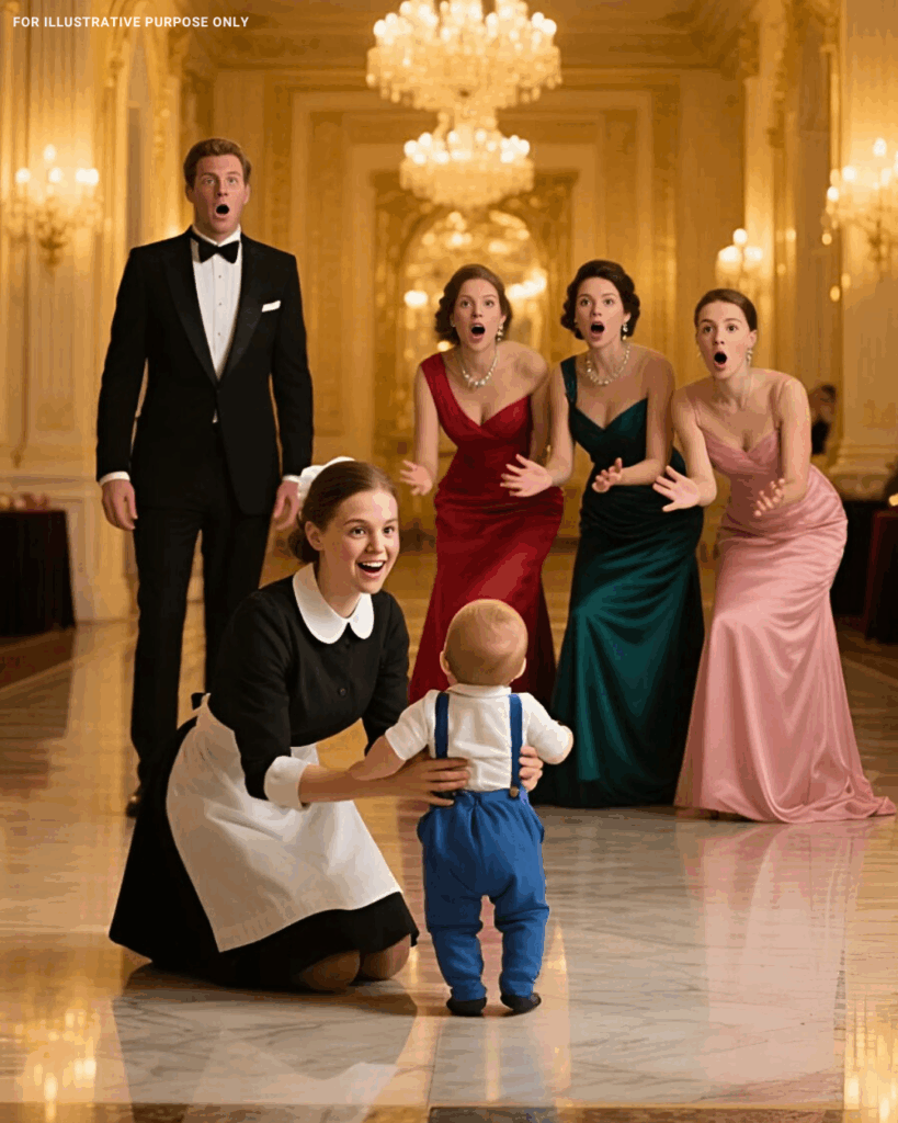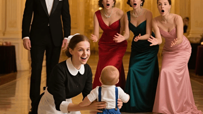Avec une détermination hésitante, il passa devant leurs bras ornés de bijoux et leurs robes élégantes, se dirigeant vers le coin où Emily, la jeune servante, était agenouillée en silence, ramassant des jouets. Elle se figea, les yeux écarquillés, lorsqu’Ethan se jeta dans ses bras, s’accrochant à son uniforme avec une confiance absolue.