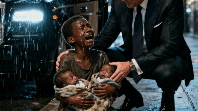 Sous une pluie battante, un milliardaire découvre un petit garçon sans-abri tenant deux bébés dans ses bras — La vérité lui brise le cœur…