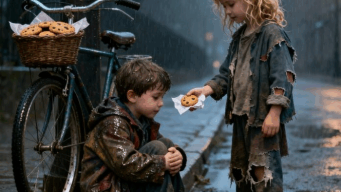 Lily n’était pas comme les autres enfants. Elle avait des boucles blondes indomptables, des taches de rousseur comme des paillettes de sucre, et un cœur sensible à la douleur, même quand les autres passaient à côté. Ce jour-là, alors que la pluie se mettait à tomber à verse, elle vit un garçon assis sur le trottoir, les genoux serrés contre sa poitrine, tremblant de froid. Il ne devait pas avoir plus de cinq ans. Son beau manteau était trempé et ses chaussures couvertes de boue.