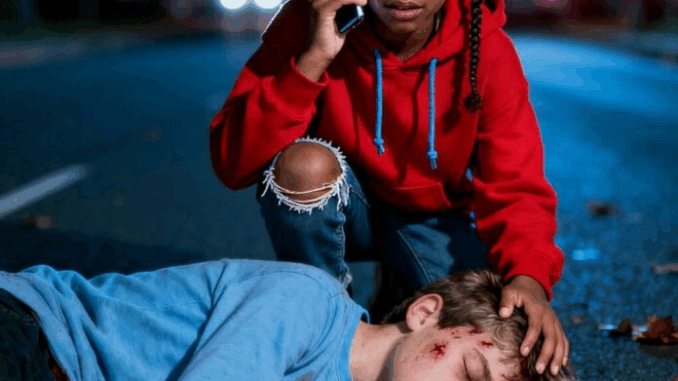 Dix minutes plus tard, il arriva au milieu du chaos. Les gyrophares de la police clignotaient sur le trottoir glissant sous la pluie. Une petite foule s’était rassemblée. Et là, étendu sur le trottoir, se trouvait Ethan, pâle et inconscient, une jeune fille noire agenouillée à ses côtés, lui tenant la main.