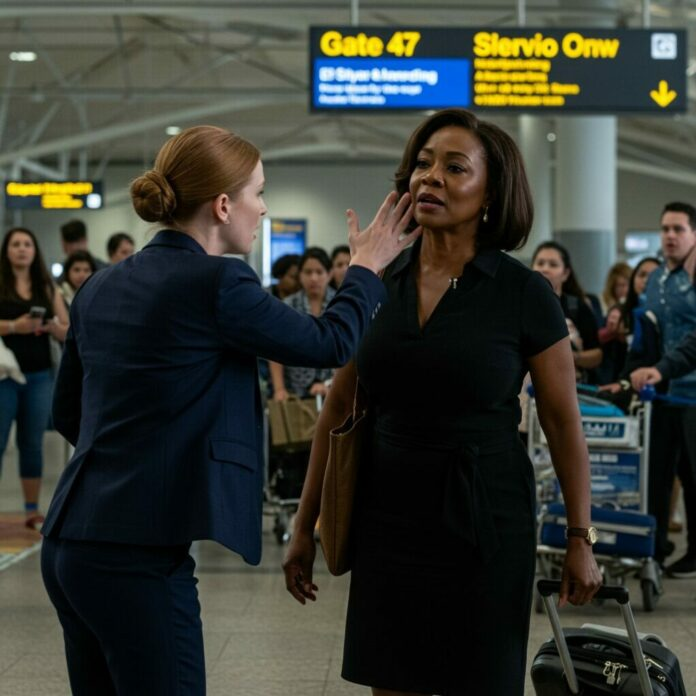 Le directeur de l’aéroport gifle une femme noire à la porte d’embarquement — elle sourit : « Je suis propriétaire de cette compagnie aérienne…
