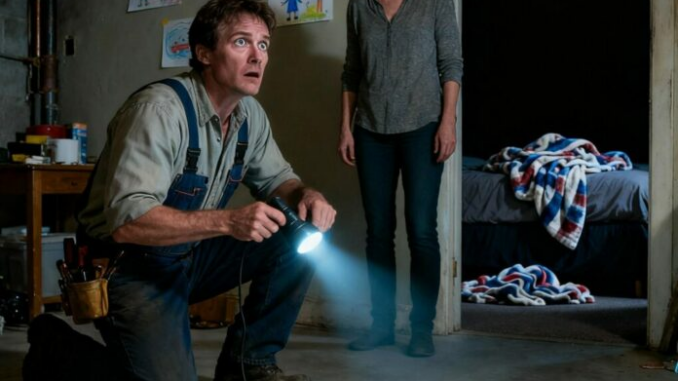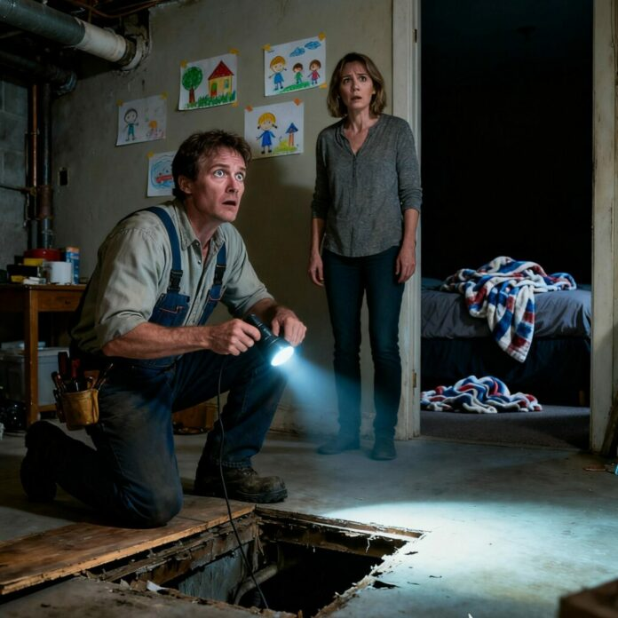 Il hésita, puis expira d’une voix tremblante. « La trappe du vide sanitaire était ouverte et j’ai entendu du bruit. Pas des rats. Des mouvements lents… prudents. J’ai cru que votre mari était peut-être à la maison, mais j’ai ensuite trouvé une couverture, des emballages alimentaires et une pile de votre courrier. »