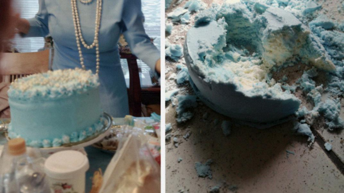 Puis, dans un geste d’une absurdité et d’une préméditation sans nom, elle attrapa le couteau à gâteau posé sur la table. Elle trébucha légèrement. Ce ne fut pas suffisant pour la faire tomber, mais juste assez pour que le gâteau, d’une valeur de 300 dollars, s’écrase au sol.