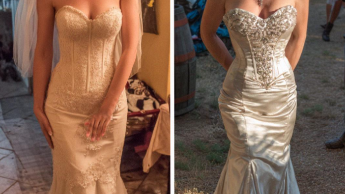 Pas seulement blanche. C’était une robe longue en dentelle, de style sirène, avec un corsage orné de perles et une traîne. Une véritable robe de mariée.