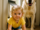 Une petite fille souriante appuyée sur un comptoir | Source : Midjourney