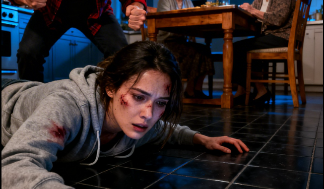 Je me suis effondré sur le carrelage de la cuisine. Le froid m’a frappé la joue. Ma vision s’est brouillée. J’avais les côtes en feu, comme si elles étaient remplies de charbons ardents.