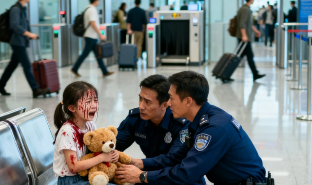 Elle était assise seule sur un banc près de l’entrée du contrôle de sécurité, son lapin en peluche inerte sur ses genoux, les épaules voûtées. Un agent de sécurité en uniforme se tenait près d’elle et lui parlait doucement. Un autre agent, à proximité, tenait un bloc-notes.