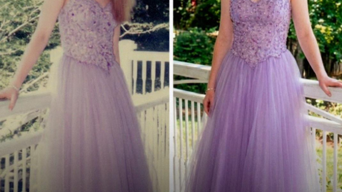 C’était une robe en satin lavande, ornée de fleurs brodées sur le corsage et de fines bretelles spaghetti qui scintillaient sous la lumière. Les photos d’elle la portant avant sa remise de diplôme semblaient tout droit sorties d’un magazine pour adolescentes de la fin des années 90.
